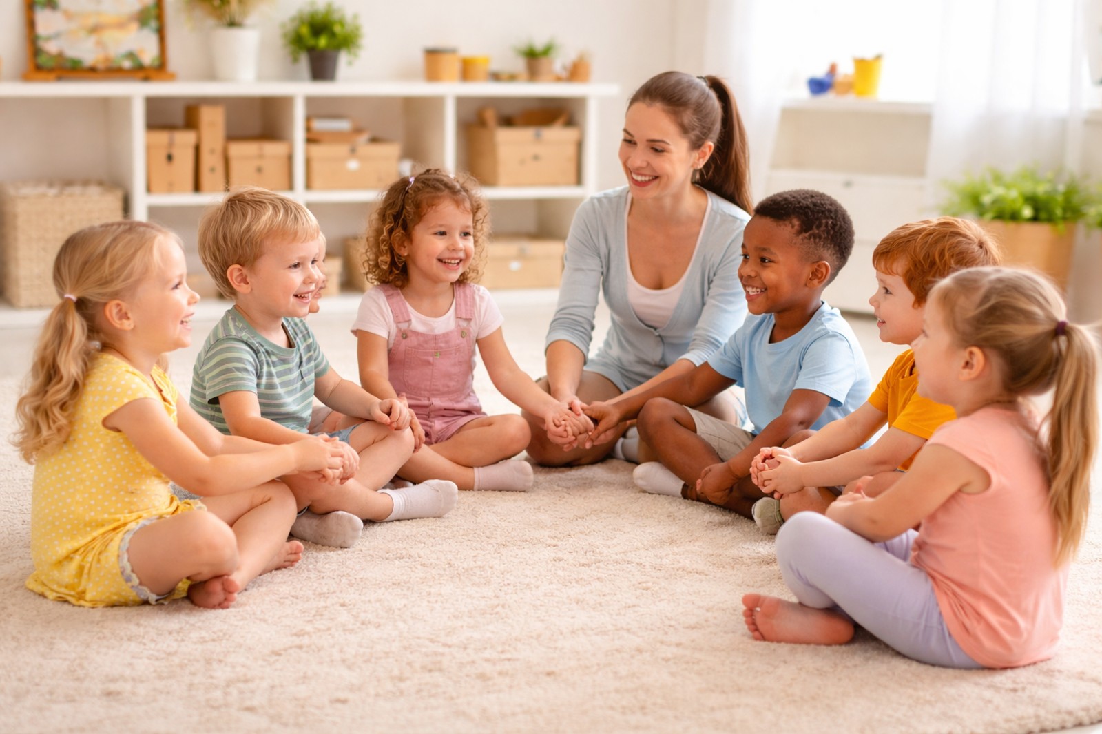Angličtina hrou děti přirozeně seznamuje s novými slovíčky pomocí obrázků, písniček a jednoduchých her. Díky pohybu, říkankám a společným aktivitám si děti lépe pamatují nová slova a nebojí se mluvit. Učí se soustředit, naslouchat a reagovat na pokyny v cizím jazyce, a přitom si budují pozitivní vztah k angličtině už od malička.