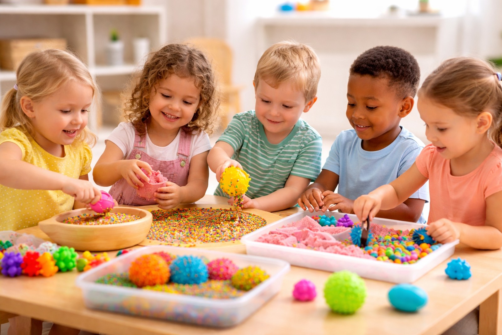 Smyslohraní rozvíjí dětskou zvídavost a fantazii pomocí her, které zapojují všechny smysly. Děti zkoumají různé materiály, tvary a vůně, čímž posilují jemnou motoriku, koordinaci ruky a oka i schopnost soustředit se na jednu činnost. Zároveň se učí vnímat své tělo, emoce a okolní svět s větší jistotou a radostí.